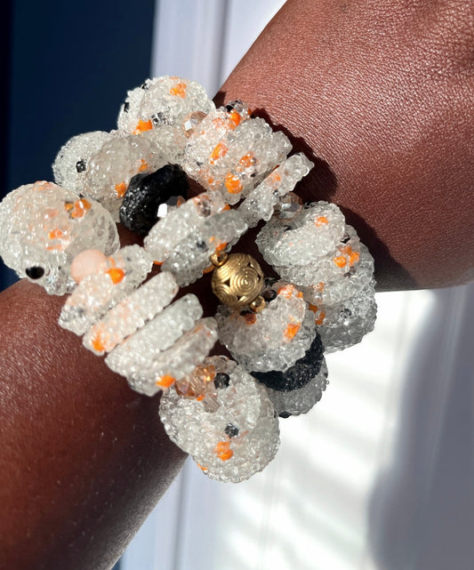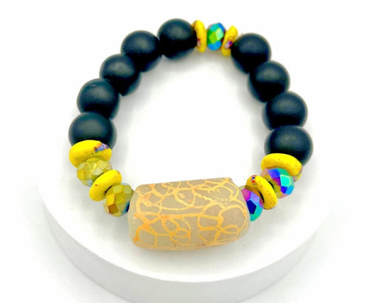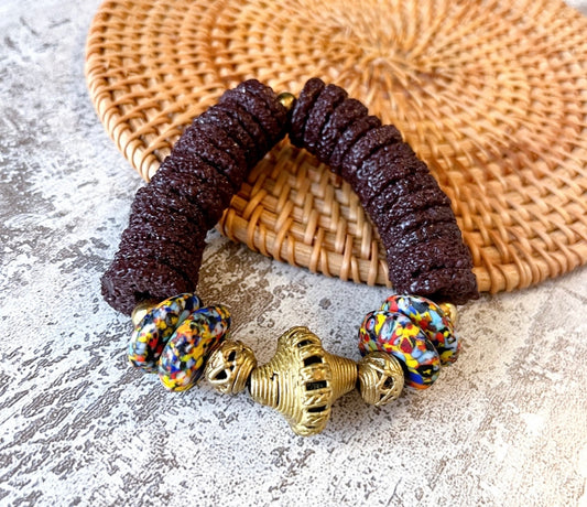 Fafa Krobo Sugar Crust Glass Beads Brass Bracelet