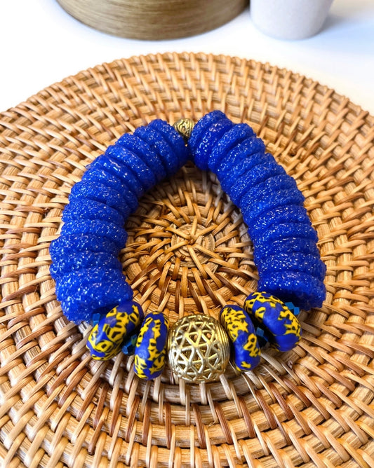Peduase Recycled Glass Beads Brass Bracelet