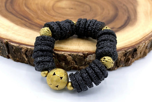 Denkyem Adinkra Recycled Glass Beads Brass Bracelet