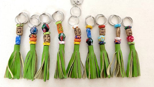 Recycled Ashanti Krobo Brass Beads Leather Keyring