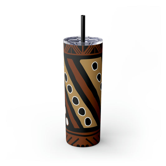 20 oz Brown & Tan Mud Cloth Print Skinny Tumbler with Straw