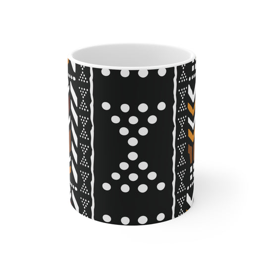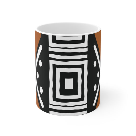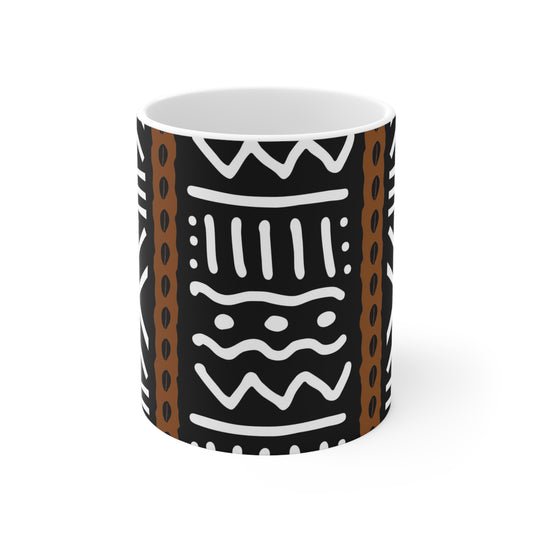 11 oz Brown Mud Cloth Print Ceramic Coffee Mug