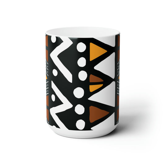 15oz Brown & Tan Mud Cloth Print Ceramic Coffee Mug