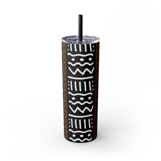 20 oz Brown & Black Mud cloth Print Skinny Tumbler with Straw