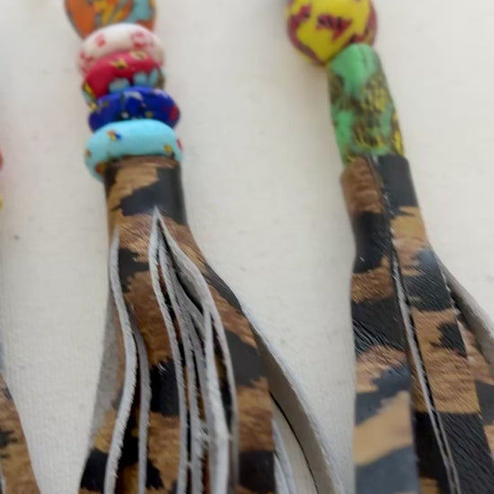 Crafted with premium cheetah leather, a brass bead created with the traditional Lost Wax technique, and vivid Ghana trade beads, this keychain is a work of art.